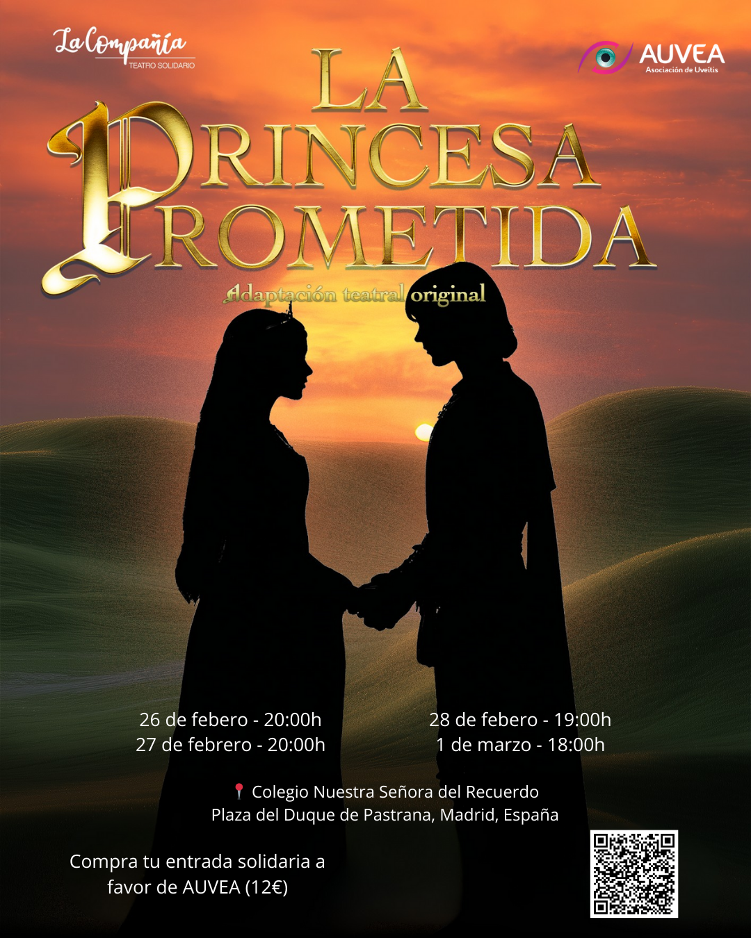 Con motivo de su 20º aniversario, La Compañía ha preparado una adaptación teatral solidaria de La princesa prometida, una comedia para todos los públicos, con música y danza en directo. Una oportunidad preciosa de disfrutar del teatro… y apoyar a AUVEA al mismo tiempo.