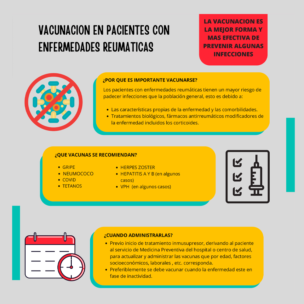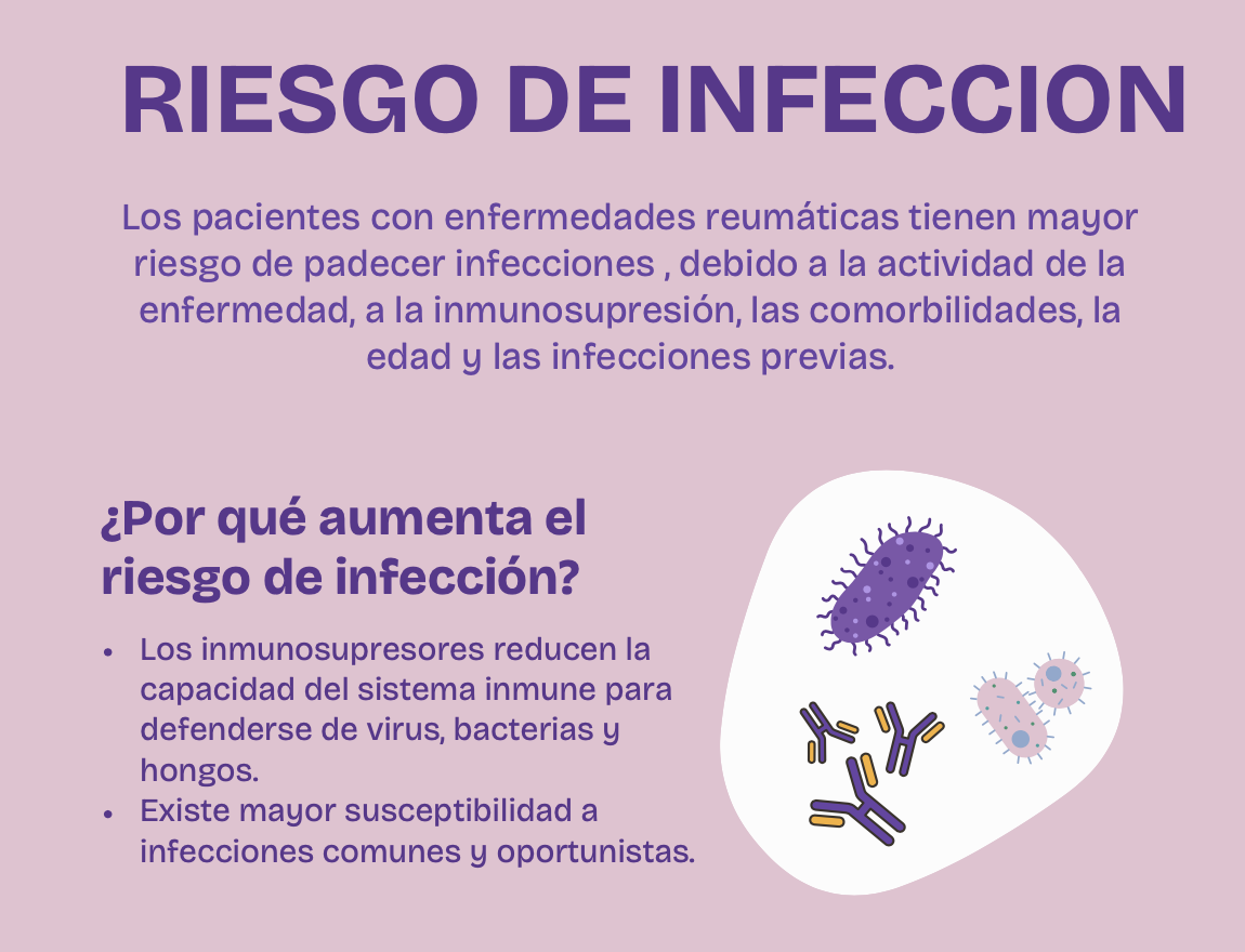 Los pacientes con enfermedades reumáticas tienen mayor riesgo de padecer infecciones, debido a la actividad de la enfermedad, a la inmunosupresión, las comorbilidades, la edad y las infecciones previas.
